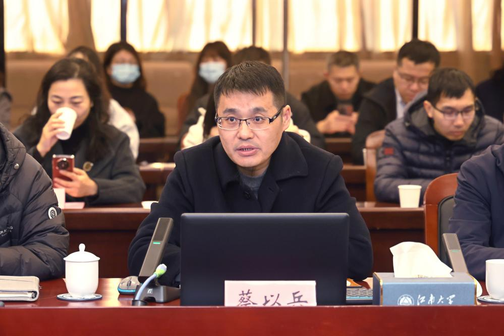 首先,实验室与资产管理处处长蔡以兵代表实验室建设与安全工作委员会作2025年度工作汇报。他围绕实验室条件建设提速升级、实验室安全管理筑牢防线、资产房产管理精准发力等三大主线,系统回顾了2025年的重点工作,并对2026年工作方向进行了展望。